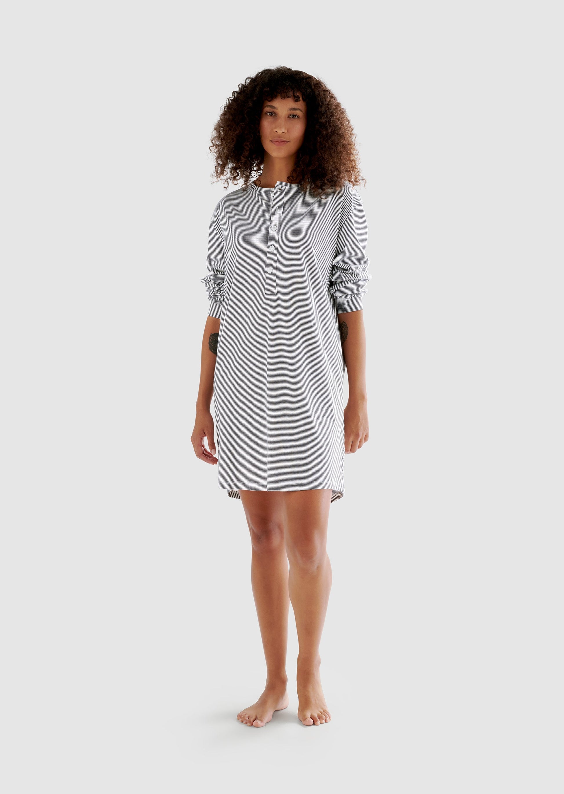 Our Dream Henley dress makes everyday feel like an easy Sunday morning. Made from organic cotton jersey, itâs incredibly comfy and soft to the touch. The half-placket and soft touch buttons make it effortless to button up for warmth on cold nights, or button down for breathability during warm days. With a twin needle hem stitching and self fabric cuffs and neck, itâs a relaxed fit thatâs perfect for any season. Designed in Australia. Ethically knitted and constructed in Turkey from sustainably farmed materials.
