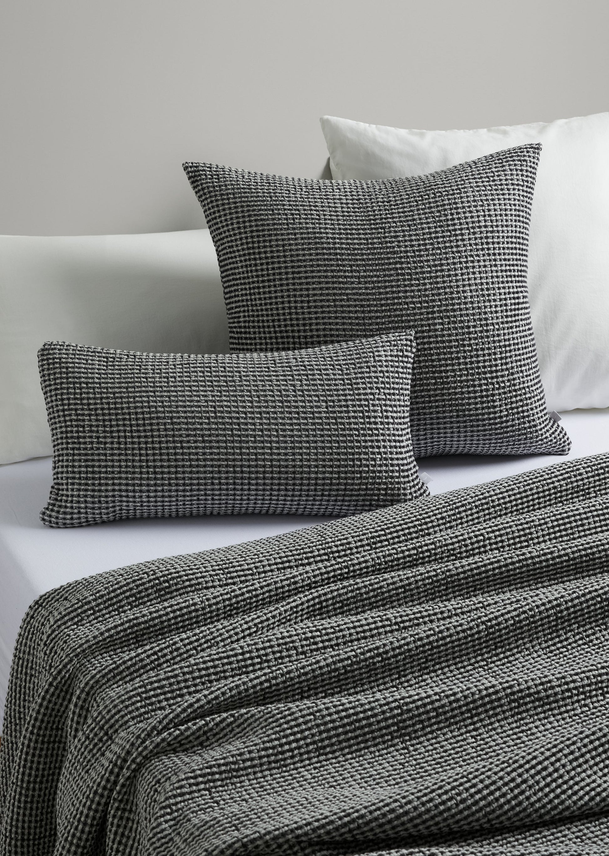 Super comfy and naturally breathable, our Waffle Rectangle Cushion Cover is perfect for cool summer nights or adding an extra layer of warmth during the Winter months. Made with GOTS certified organic cotton and woven in Portugal, the textured rib design has been stonewashed for extra softness. Featuring a two tone waffle construction, the cushion cover is a light to mid weight with an invisible zip so cushions look great from any side or angle. With a simple knife edge finish, it's a stylish way to add texture and comfort to your bed or sofa. Designed in Australia.